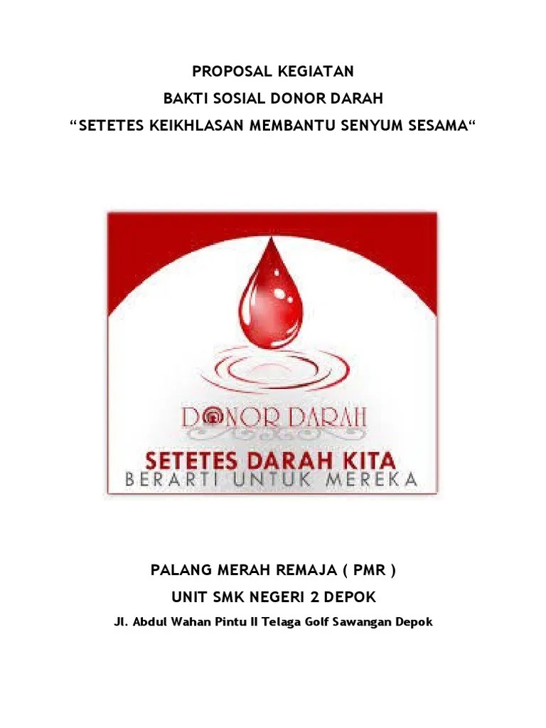 Ulasan prososal kegiatan donor darah kop proposal keterangan lembaga atau instansi. Penyumbangan darah biasa dilakukan rutin di unit donor darah (udd) pmi pusat maupun unit donor darah di daerah. Kegiatan, tempat dan penanggungjawab (contoh terlampir). Sebagai contoh, bertambahnya jumlah kendaraan bermotor diikuti. Proposal donor darah sma negeri 1 kepanjen palang merah remaja unit sma negeri 1 kepanjen jl.